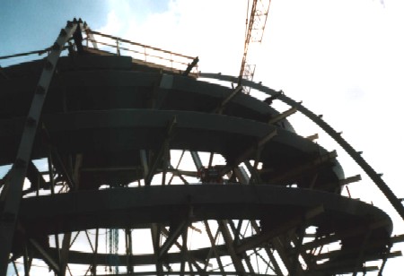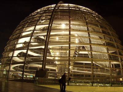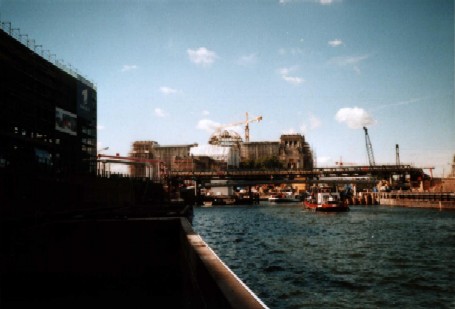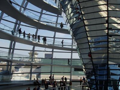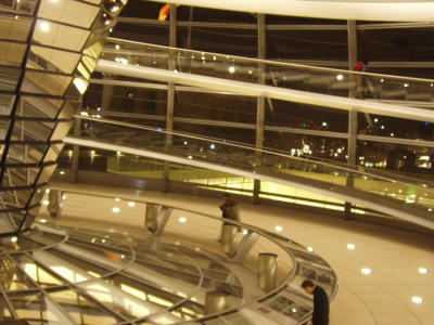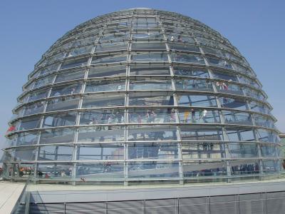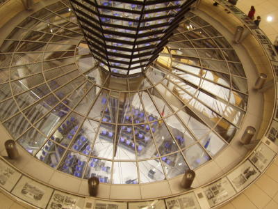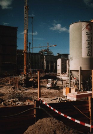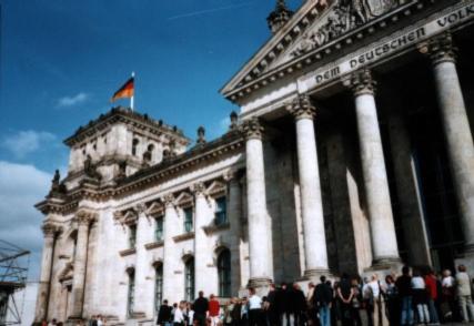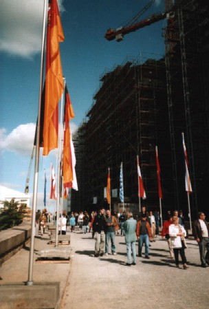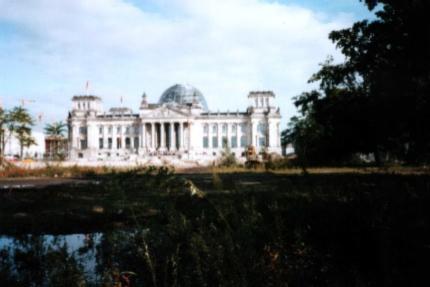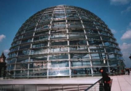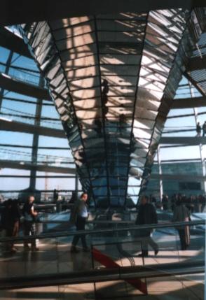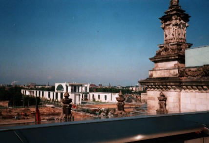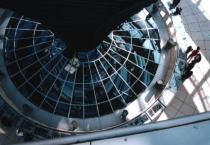 Am 21. September 1997 schlenderte ich durch die „neue“ Hauptstadt. Unweit des Brandenburger Tores hatte sich eine lange Warteschlange gebildet. Bananen gab's nicht, man war ja im West-Teil der Stadt. Aber irgendetwas Besonderes musste es schon sein – und siehe da: Mitten im Umbau des historischen Reichstagsgebäudes zu einem modernen Parlamentsgebäude hatte man einen „Tag der offenen Tür“ eingerichtet. In einem rigiden Einbahnstraßensystem, das kein „ich geh noch mal kurz zurück um mir das noch einmal anzusehen“ gestattete, gelangte man vom südlichen Seiteneingang hinauf bis unter die neue im Werden begriffene Kuppel und wieder zurück. Sehr beeindruckend!