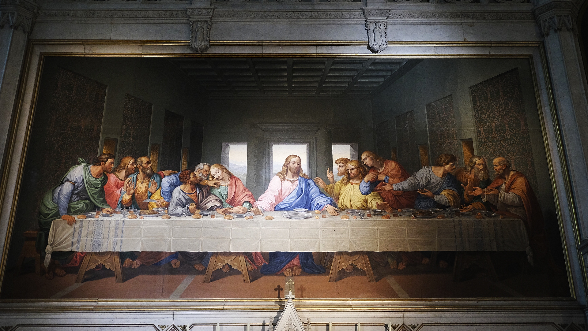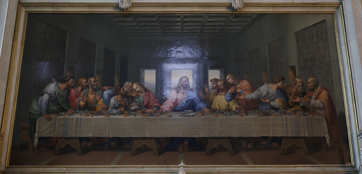 Leonardo da Vinci schuf 1494–1497 ein weltberühmtes Wandfresko: »Das letzte Abendmahl Jesu Christi« im Kreise seiner zwölf Jünger. Es hängt in Mailand. Allerdings ist es unvollständig: Des Heilands Füße fehlen, weil man genau dort in späteren Zeiten einen Wanddurchbruch machte, um eine Tür zum Nebenraum einzubauen (siehe Wikipedia). Als der Römer Giacomo Raffaello in den Jahren 1805 bis 1814 eine Kopie direkt vom Original als Wandmosaik im Maßstab 1:1 fertigte, waren die Füße noch da.